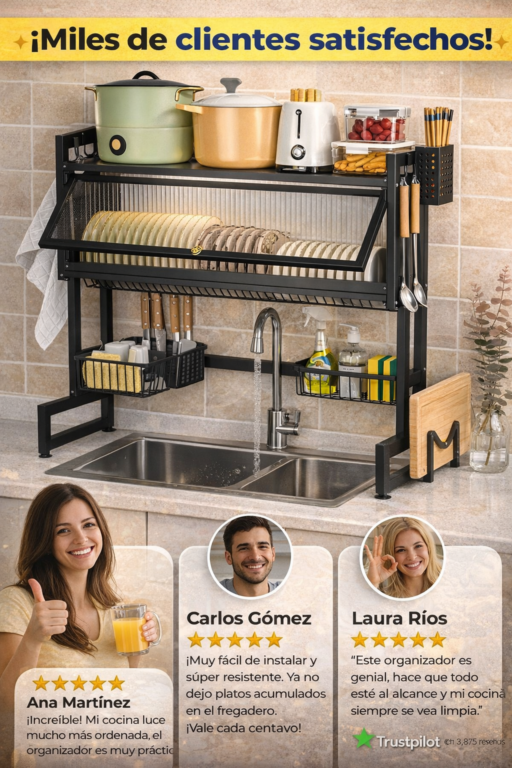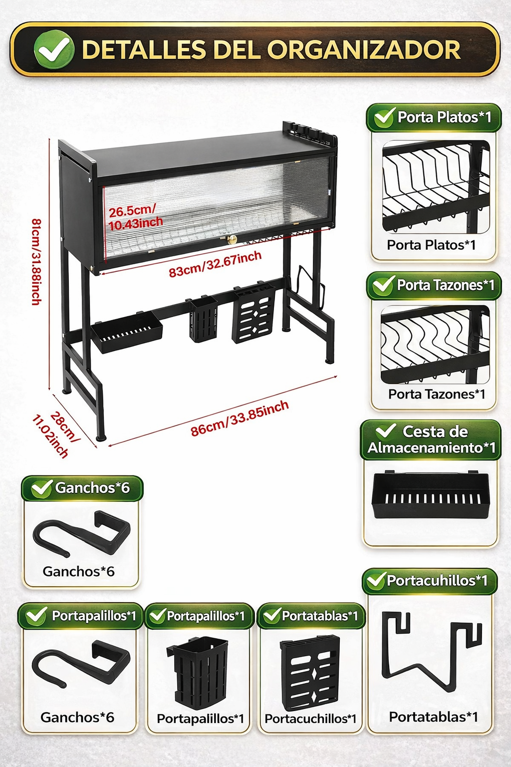 Con un diseño compacto y funcional, este escurridor te permite organizar platos, cubiertos, utensilios y más, dejando tu cocina ordenada y con un toque moderno. ✨